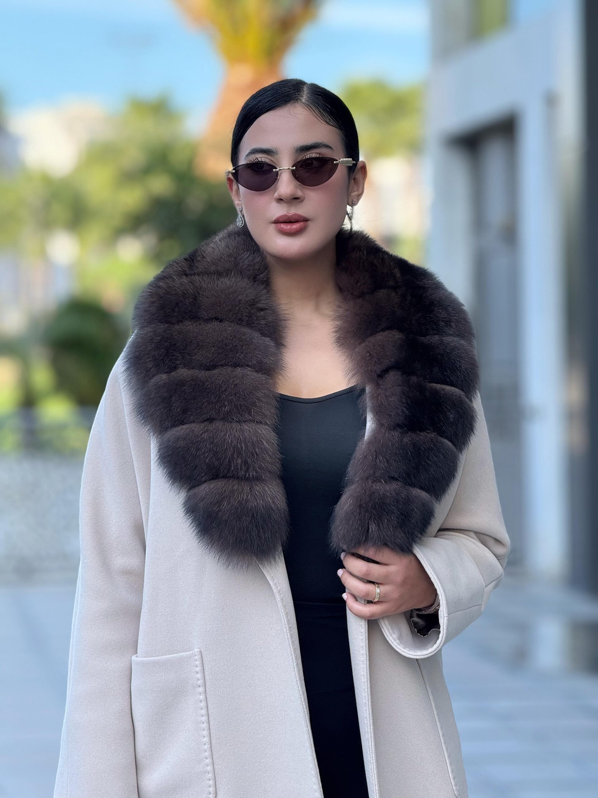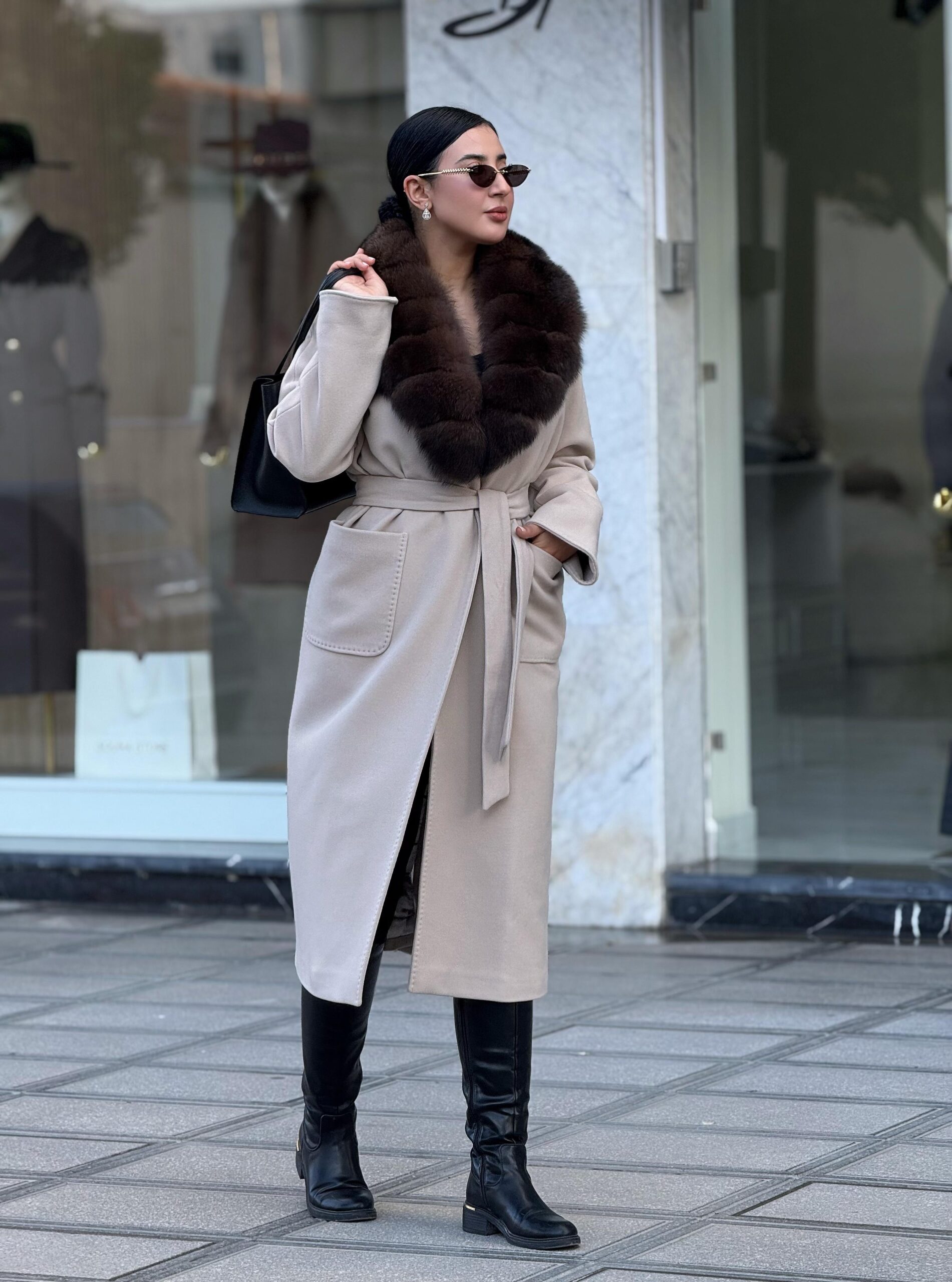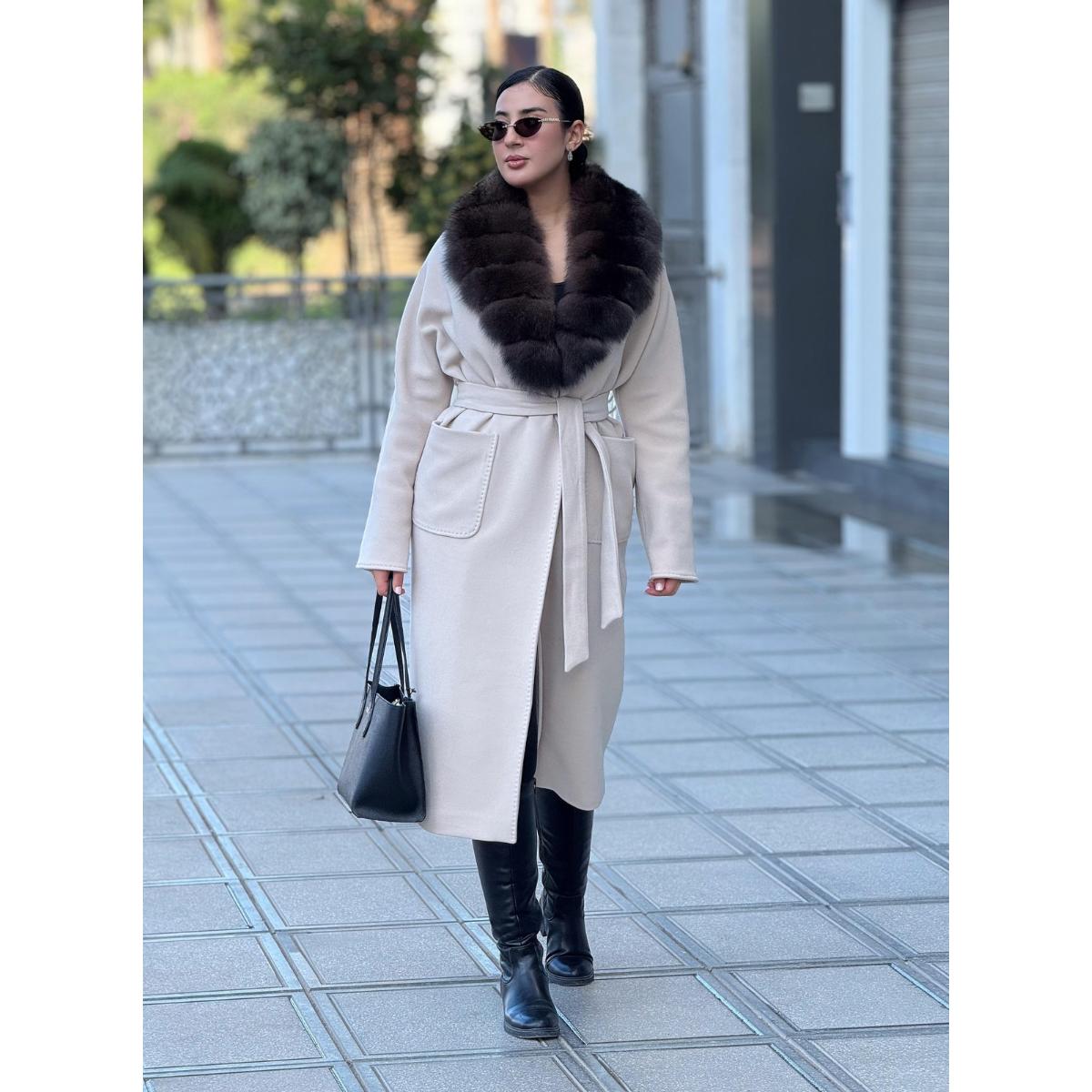 Ce manteau long à la coupe enveloppante est l’incarnation du luxe discret et de l’élégance intemporelle. Sa silhouette fluide et sa longueur maxi confèrent une allure majestueuse et sophistiquée. Le manteau est ceinturé à la taille, permettant de souligner la féminité tout en conservant une ligne épurée.