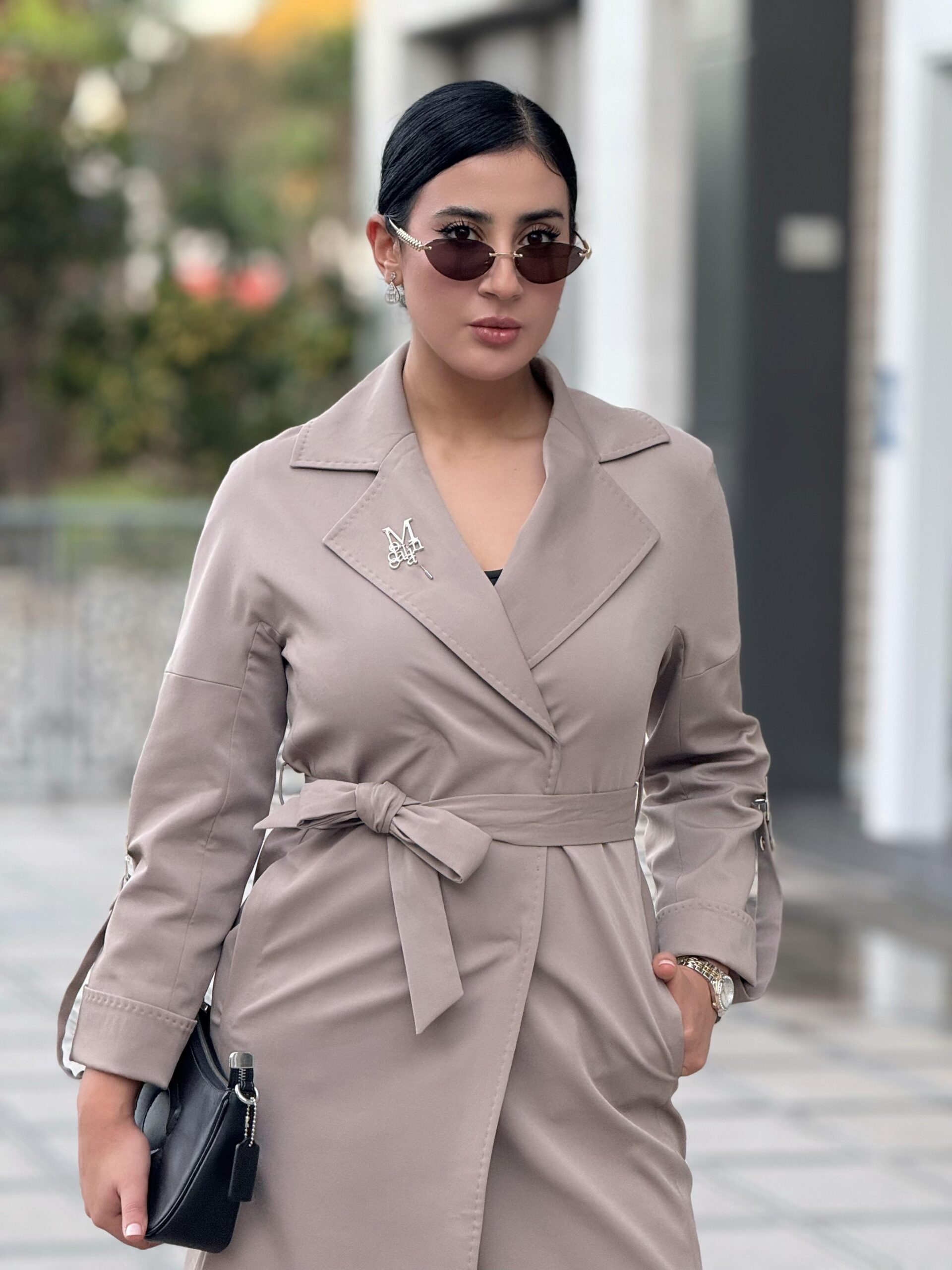 e Trench « Aurore Grise » est l’essence même de l’élégance épurée et de la polyvalence. Sa teinte greige ou kaki clair, à mi-chemin entre le beige et le gris, est une couleur neutre sophistiquée, idéale pour une allure chic et facile à assortir en toute occasion.