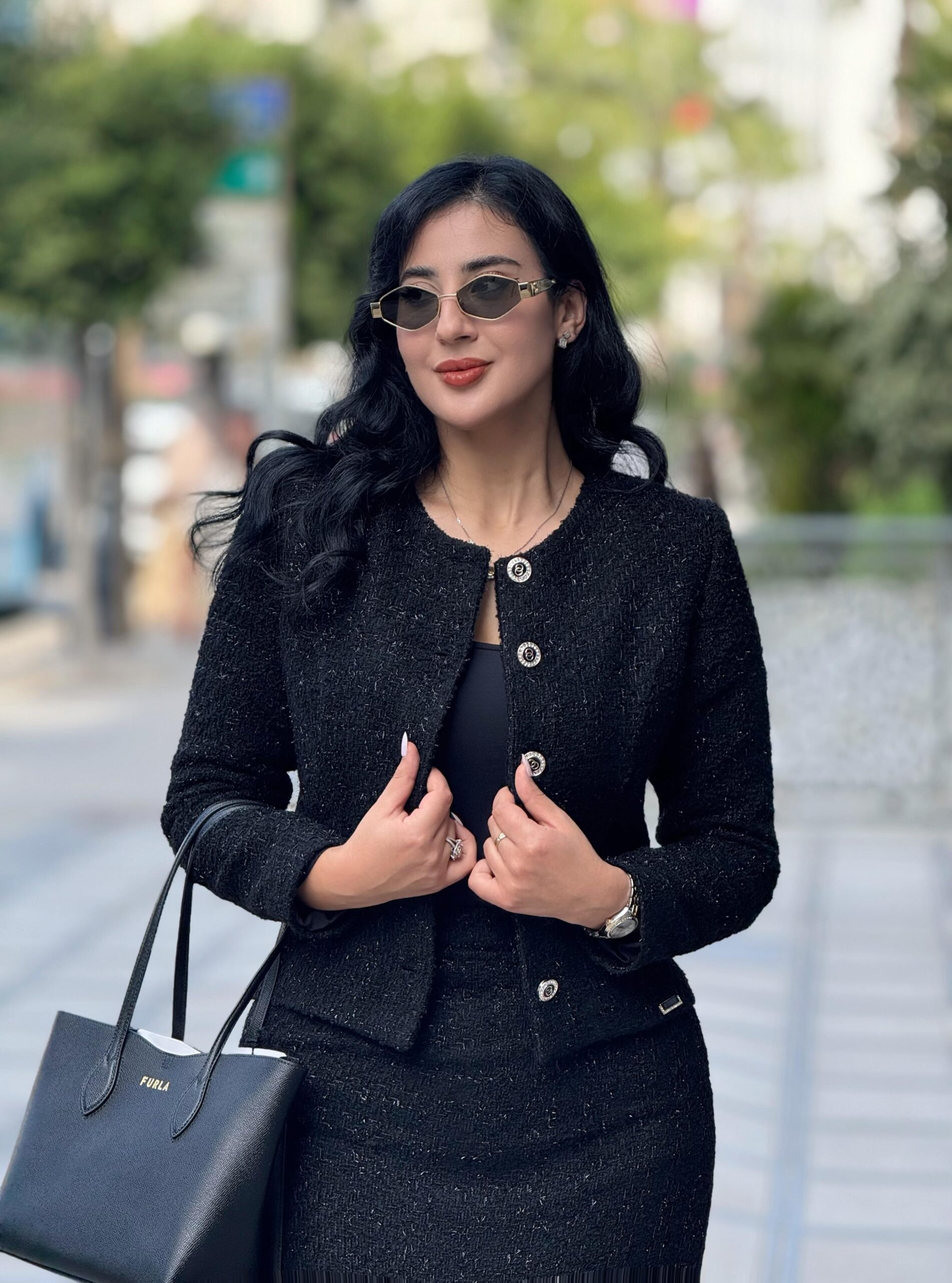 Découvrez l’Ensemble « L’Essence du Tweed », une pièce maîtresse qui allie tradition et modernité. Confectionné dans un tweed noir richement texturé, cet ensemble offre un look d’une sophistication inégalée.