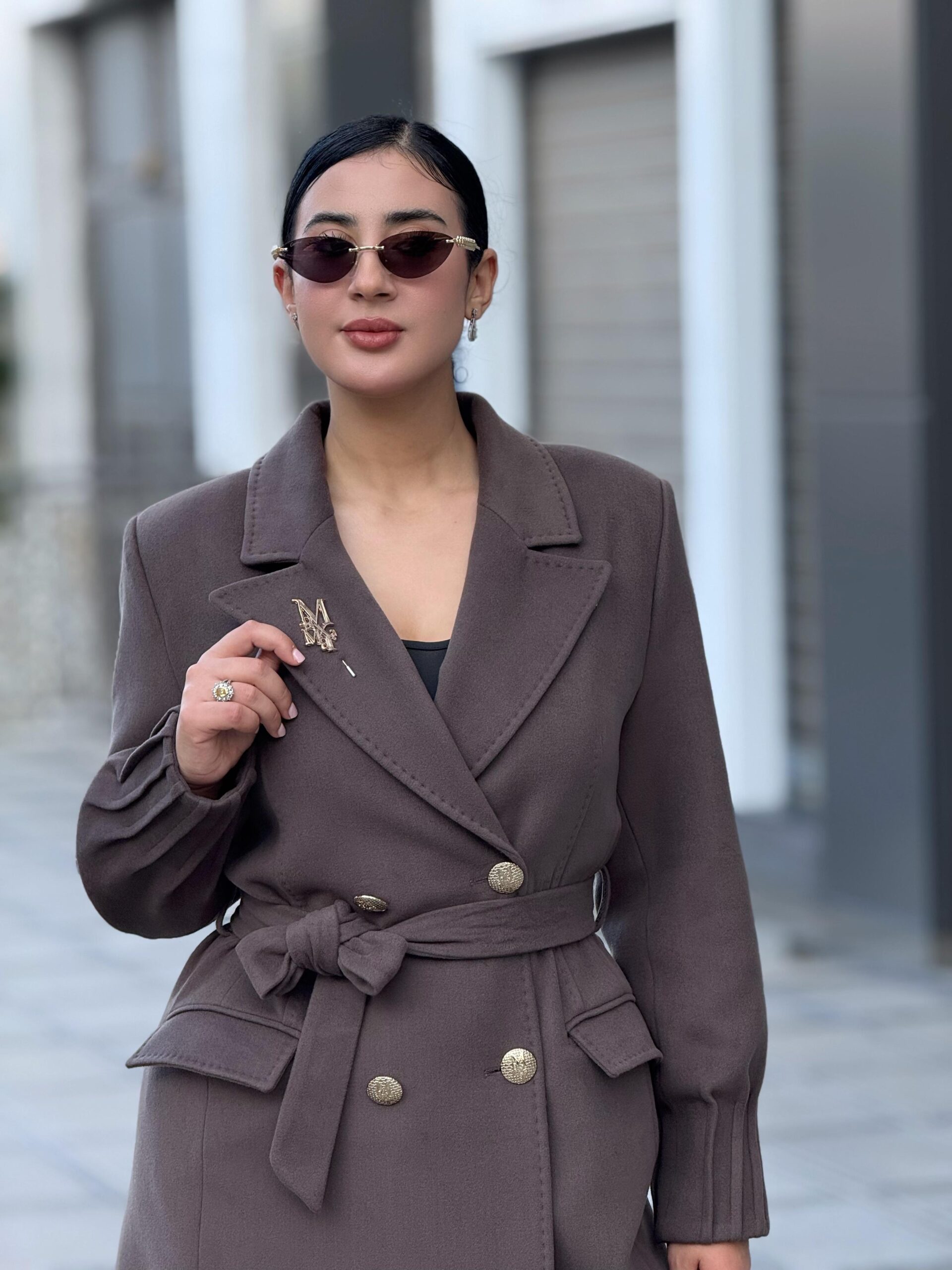 Idéal pour les journées fraîches où l’on souhaite rester sophistiquée, le « Taupe Velouté » est un incontournable de la garde-robe d’hiver. C’est le manteau qui allie le raffinement des lignes militaires au confort d’une matière riche et enveloppante.